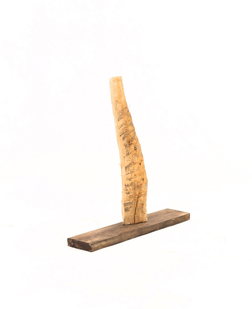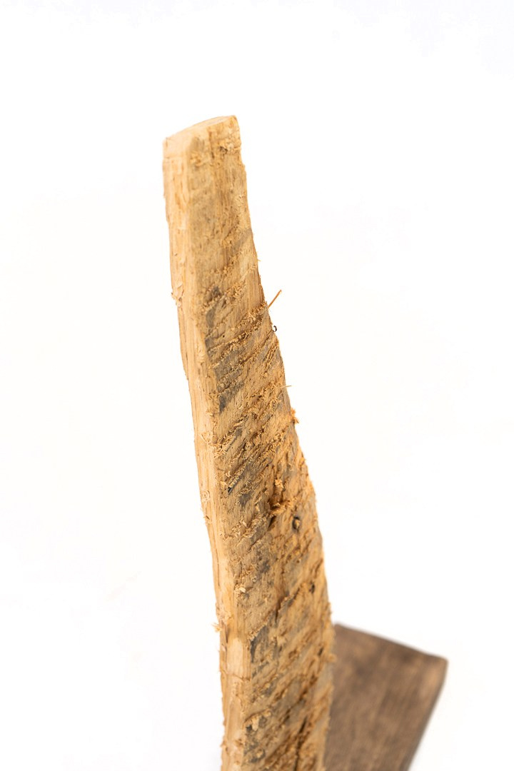 “Dullness” is a work about resistance and limitation. The fragment of wood bears the marks of a blunt axe: instead of shaping a clear form, it leaves rough scars.